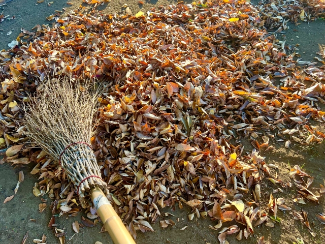 もし自宅に広葉樹があるなら熊手やブロワーで集めてください。