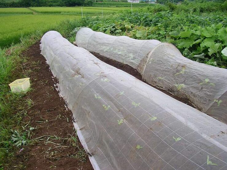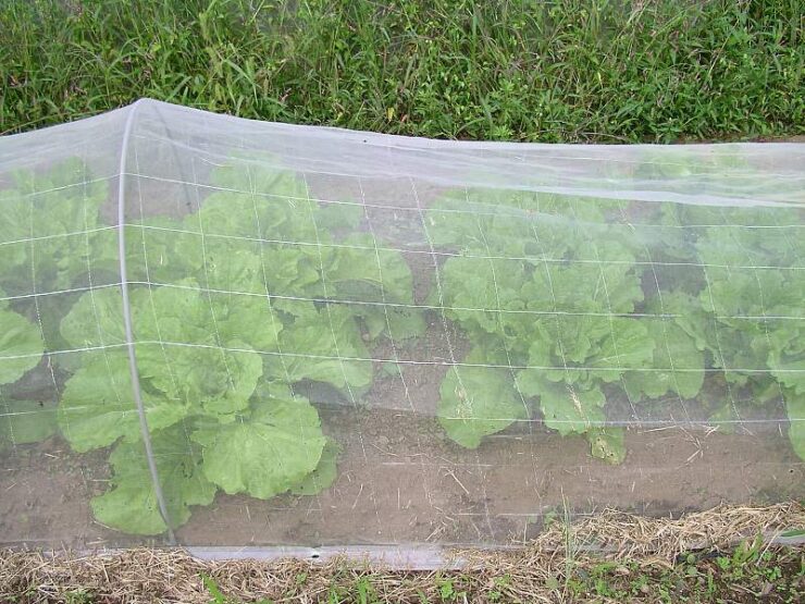 虫が減る頃に定植しますが、もし虫が残っているようなら網を張ります。