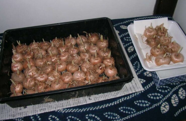 干しておいた球根を花が咲くまで暗い場所に放置します。