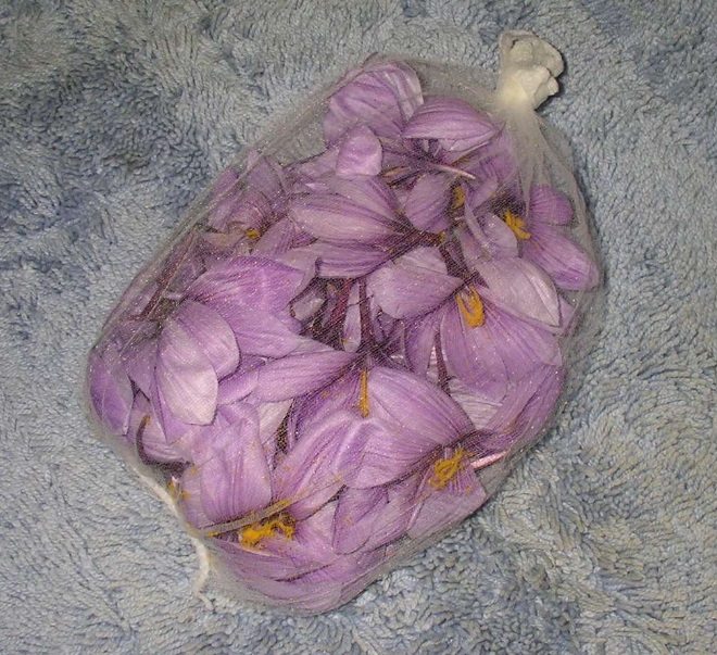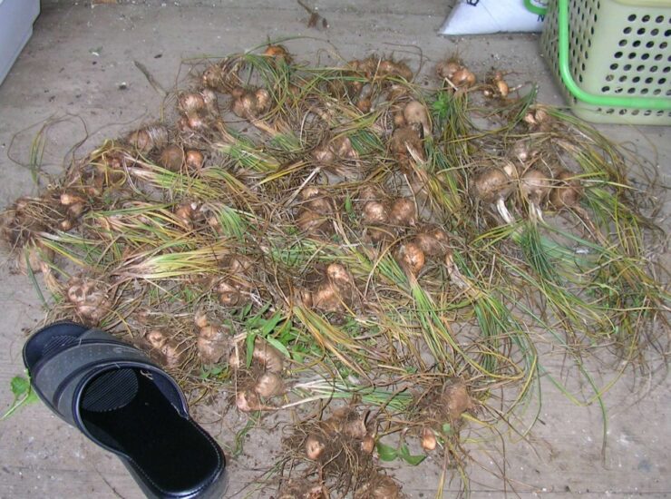 翌年、同じように夏前に球根を堀上げ、室内で保管して雌しべを採る方が綺麗なものが採れますが、面倒なら畑に置いたままで収穫しても問題ありません。