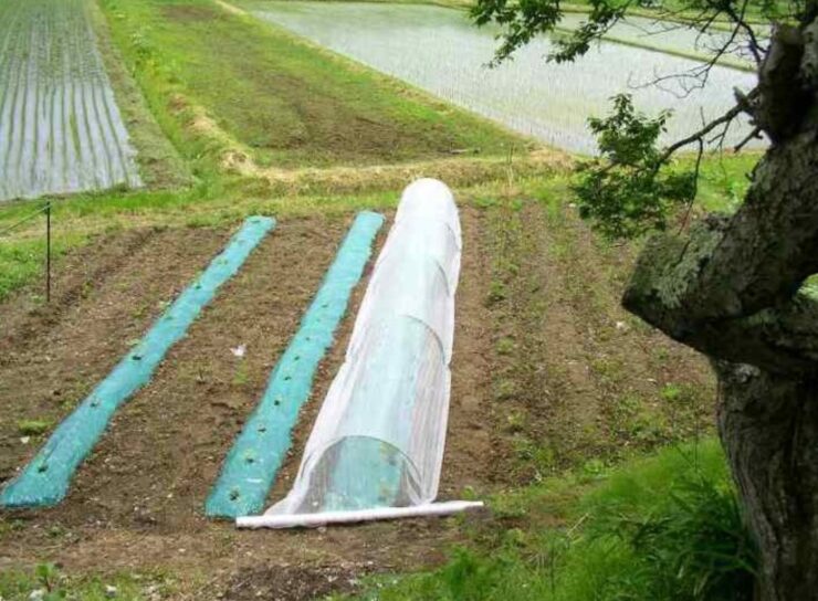 ビニールマルチは簡単に張れて効果大。 特殊な道具も要らないし、大した手間もかか... -