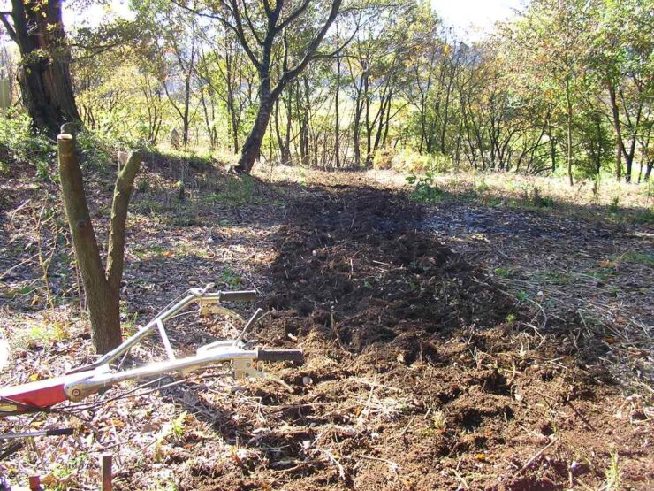 更に横幅を広げた(耕運機のベルトは近所の自動車屋で見付けた)。 ここも北西側に落葉樹を残してあるので、西日が遮られるとともに秋の北風で自然に落ち葉が畑に降り注ぐ。 数年間耕せば良い畑になりそう。 午前中の数時間に亘って、南側のサワラ・桜の木の陰になる部分があるが、日中は日当たり良好となるので、「半日陰」に適応する野菜やハーブを植えてみようと思います。