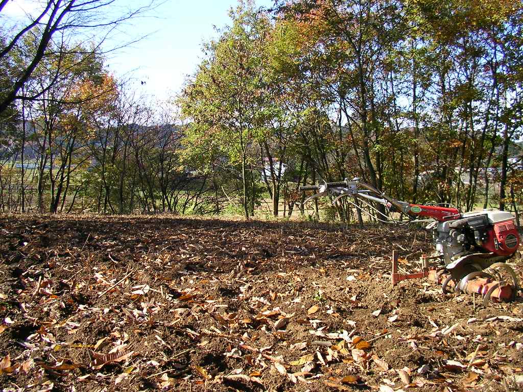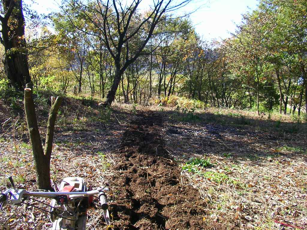 更に横幅を広げた(耕運機のベルトは近所の自動車屋で見付けた)。 ここも北西側に落葉樹を残してあるので、西日が遮られるとともに秋の北風で自然に落ち葉が畑に降り注ぐ。 数年間耕せば良い畑になりそう。 午前中の数時間に亘って、南側のサワラ・桜の木の陰になる部分があるが、日中は日当たり良好となるので、「半日陰」に適応する野菜やハーブを植えてみようと思います。