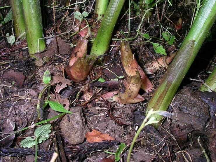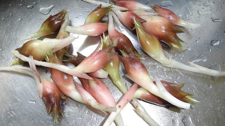 ミョウガは根っこを植え付けますが、もし日向にミョウガが生えているなら、その根っこを50cmほど堀採って、半日陰の場所に植えてみて下さい。