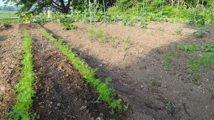 ニンジンとゴボウは同時に種蒔きすると手間がかかりません