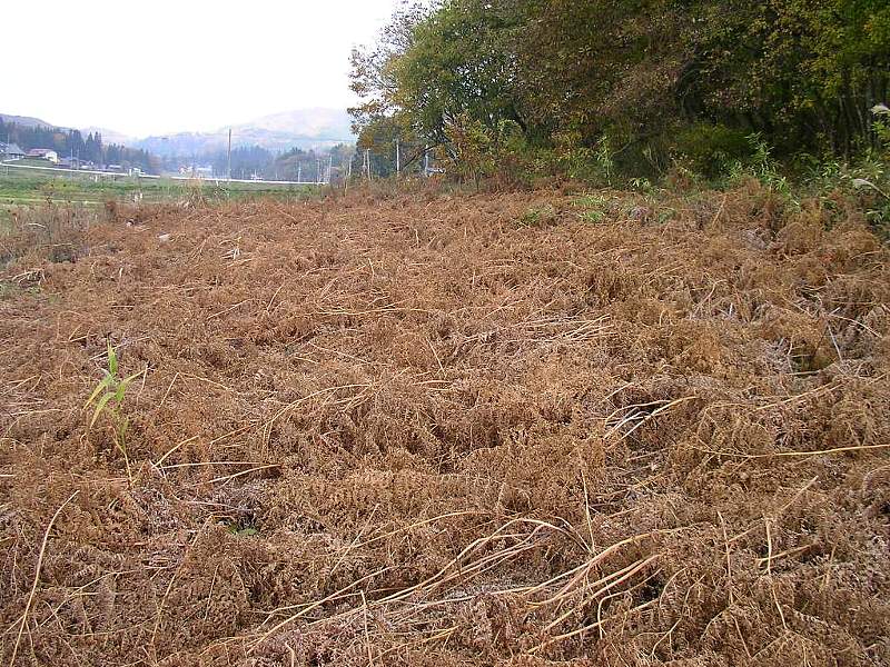 11月に入れば、ワラビはこのように枯れますから、これを待って葛や笹を除草します。