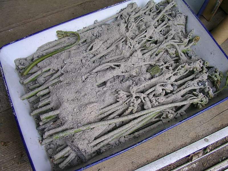 細いのは来年の為に残し、小指の太さ程度のだけを収穫します。