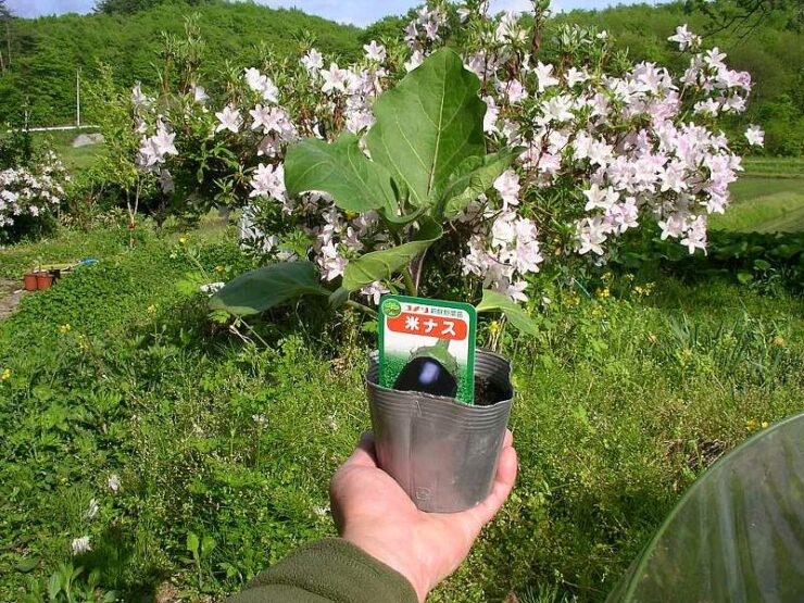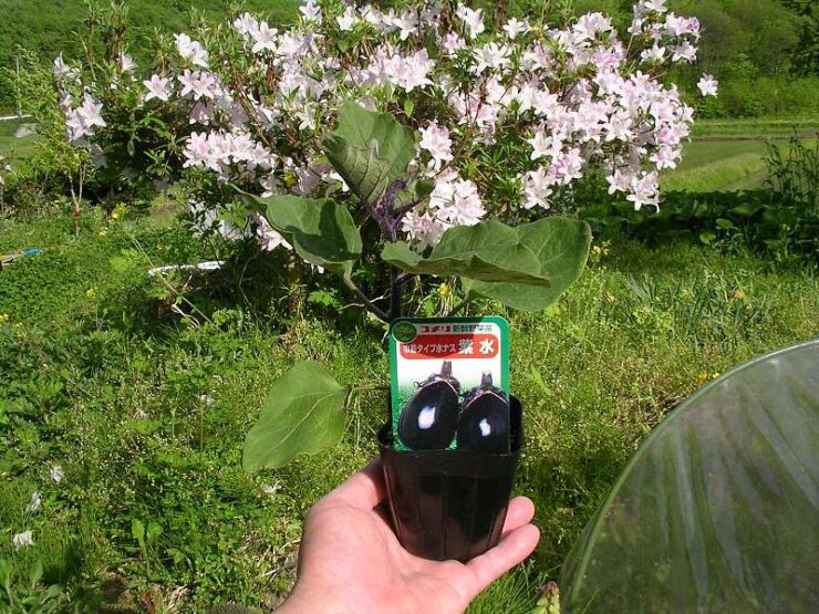 5/12 市販のナス苗は、夏頃になるとくたびれてきて根性が無くなります。 自家製の苗だと秋までしっかり元気で、更新作業をしなくても秋ナスが採れます。 「ナス苗は小さいうちに定植すべき」が常識です。 でも小さい苗は売ってないんで、苗を自作して小さいうちに定植してます。 もし大きい市販苗で済むならその方が楽なので定植方法を調べてみました。 で、前から試したかった「根切り」をやってみました。 実験用に隣町のチョー巨大ホームセンターで、大苗を買ってきました。
