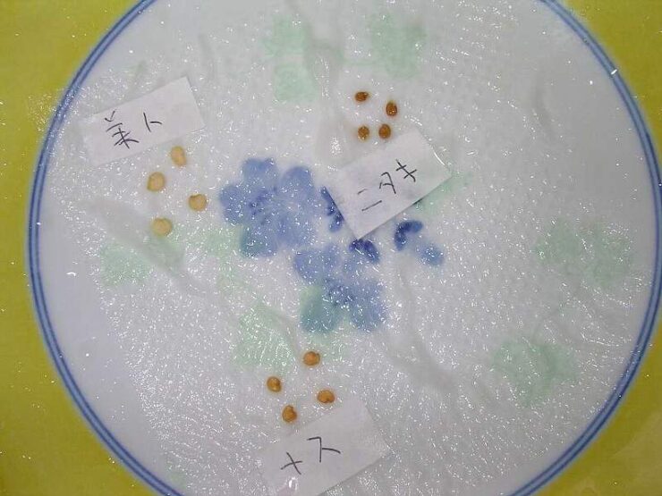 全く初めての品種なので「敵を知り・・・」と言うことで。 プラグトレイに種蒔きするのと同時に、皿蒔きでの発芽実験も開始しました。 過保護で発芽させて様子を見ます。