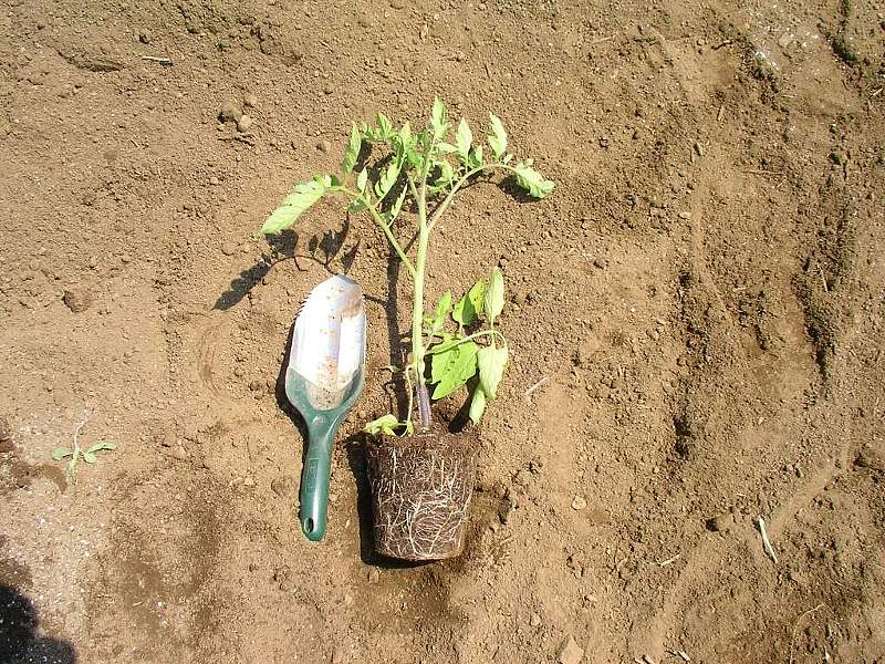 5/17 種蒔きから2ヶ月経過。 一番花が咲き始めたんで定植します。 今まで作ったどのトマトよりも成長が早く立派な苗になりました。 扱いやすい品種です。 トマトの最適pHは6.5~7。 割とアルカリ側なので苦土石灰は多めに施用します。