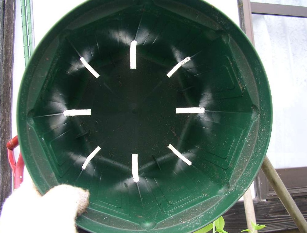 未だ根張りが弱いので、根鉢を崩さないようにして大きいスリット鉢に移します。