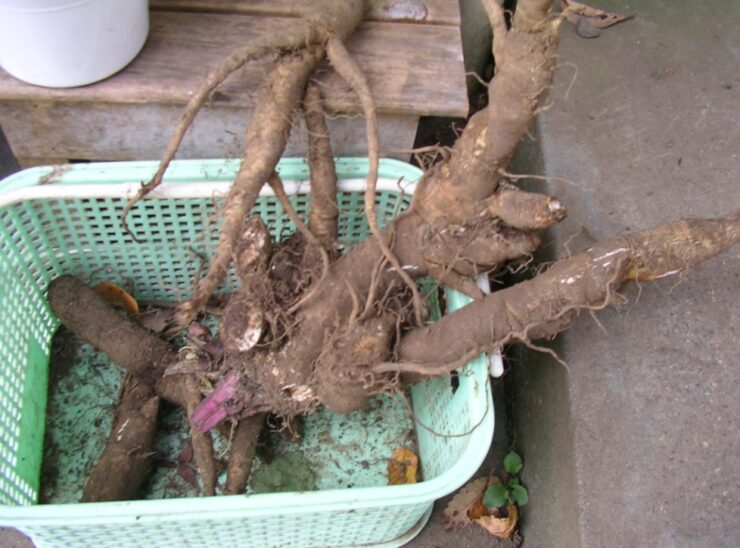 寒くなると葉は枯れますが、根は真冬でも傷むことなく収穫できます。