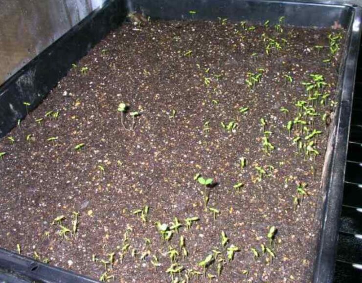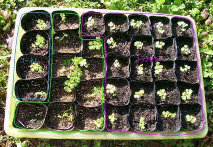 育苗箱に種蒔きし、間引きしながら育て、プラグトレイやポットに移植することで成績が良くなります。