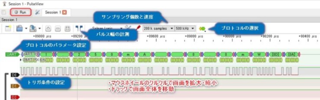 インストールは全く簡単で、トラブルも発生せずに組み込めた。 こちらを参考にさせて頂いたけど、自分の環境では更に簡単にインストール出来た。 ソフトは Saleae PulseView の両方を使ってみたけれど、Saleaeはパルス幅を測るのがイマイチやりにくく、自分としてはPulseViewの方が好きなのでこちらを残した。 ※他のUSB機器を繋いでると、たまに動かないことがあるが、接続の順番を変えたりして誤魔化す。