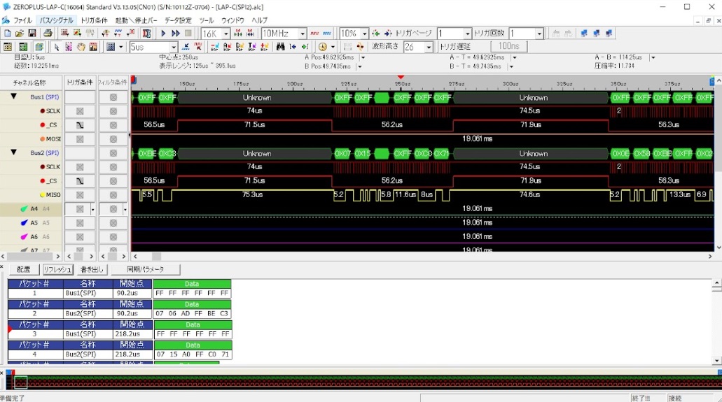 • SPIはポートをソフトでパタパタして実現した。速度は、6byte取得に56uS=9.3uS/byte → 107,143byte/秒 → 856Kbps。