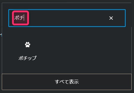 投稿画面でブロック追加ボタンをクリックし、検索窓に「ポチ」と入力するとポチップが選択できます(”poc”でも出てきます)。