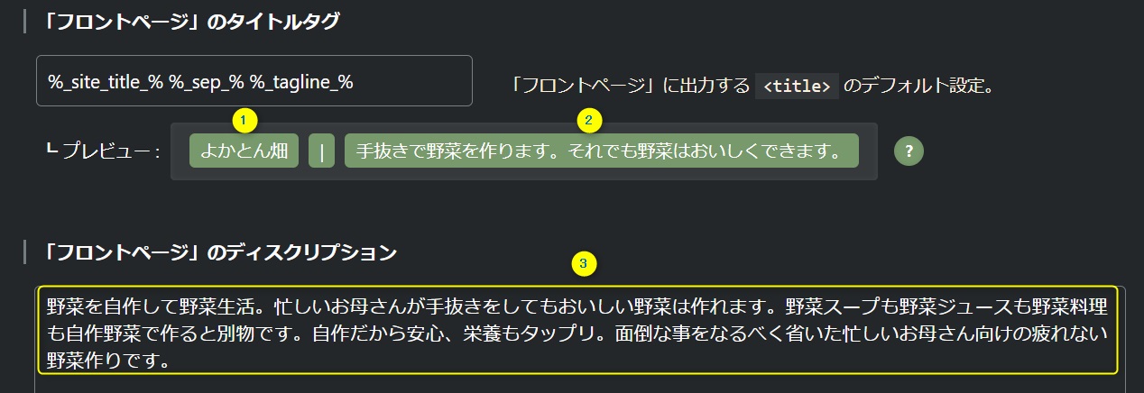各投稿ごとにタイトルやメタディスクリプションを記入することも可能です。