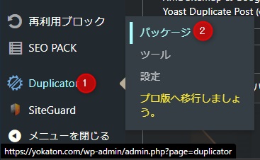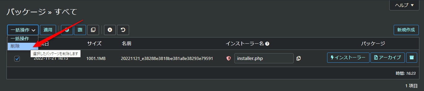 Duplicatorで削除する場合は、パッケージメニューから行えます。