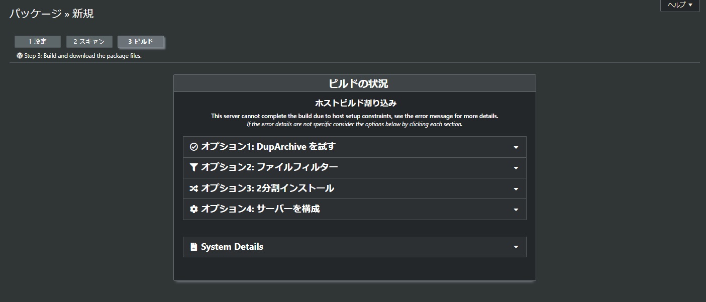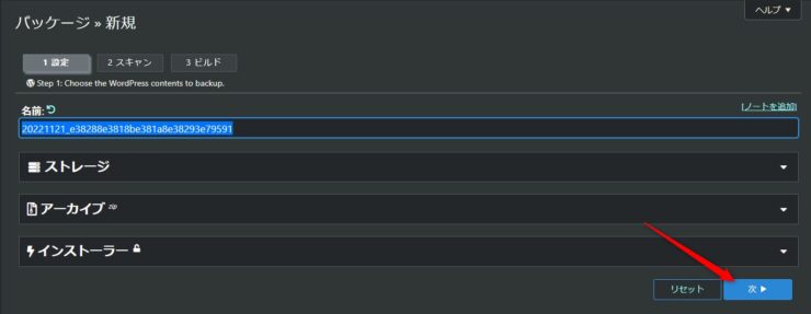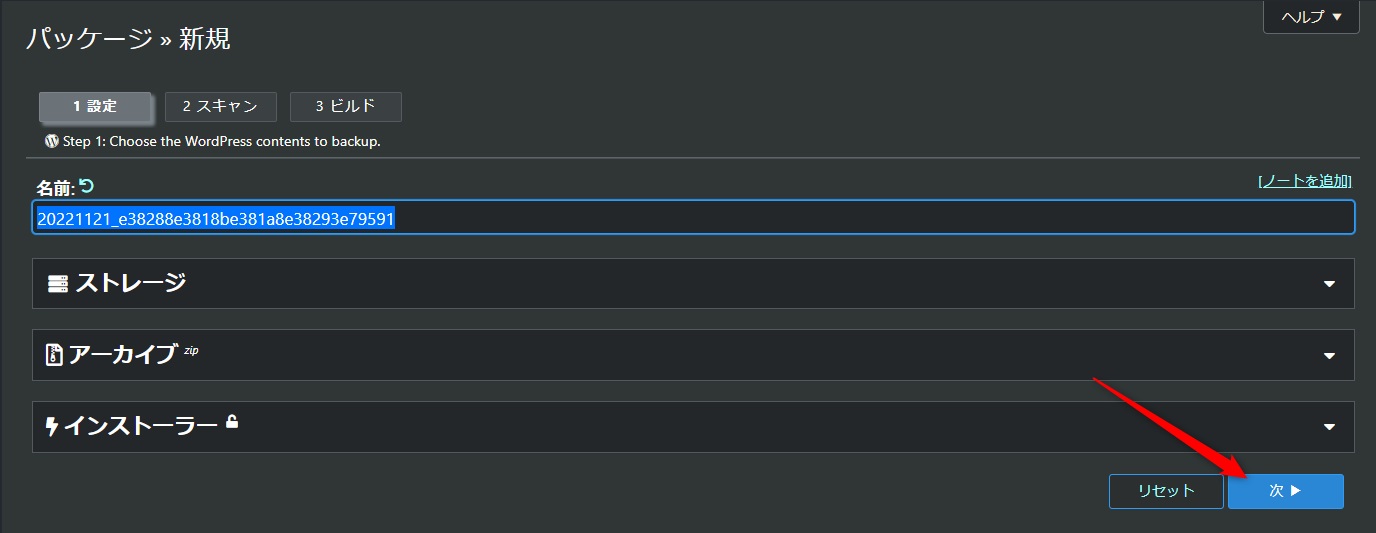 ■Duplicator>パッケージ>新規作成>アーカイブ
