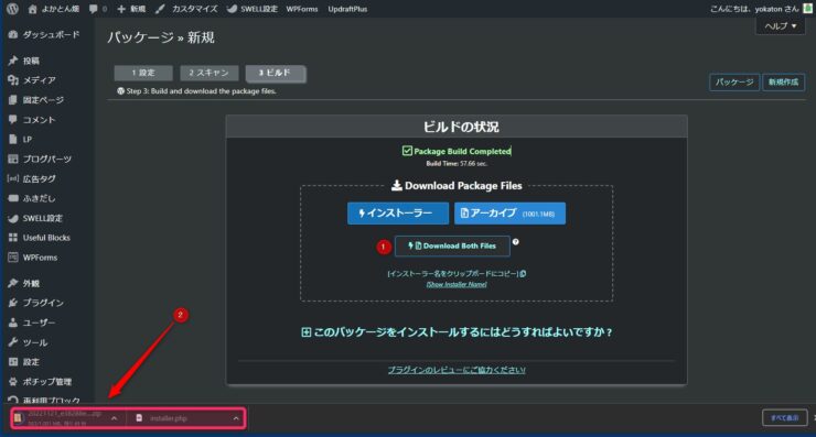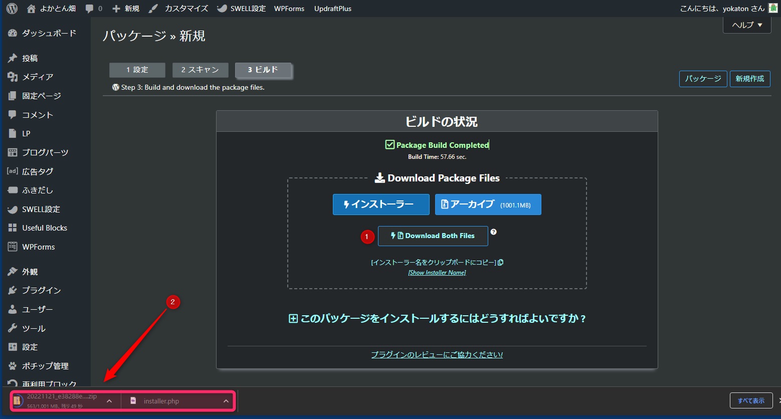 3. 引越し元でDuplicatorのパッケージを作り、ZIPとinstaller.phpをPC内に取得する。