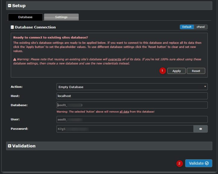 DB名やパスワードなどが自動的に読み取られて暗色で表示されています。