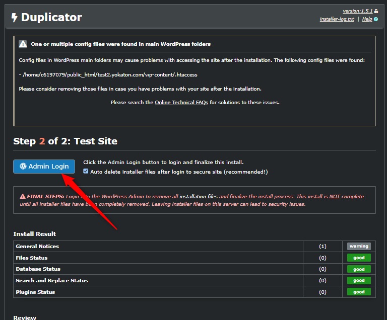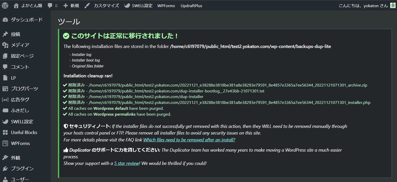 PCに取り込んだら削除して構いません(FTPでもDuplicatorでもどちらからでも削除できます)。