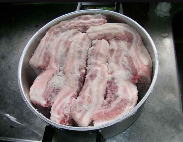下漬けは4時間ほどで終えます(ベーコンのように長く漬けると、ロース肉のおいしい成分が逃げてしまうので、短めにします)。