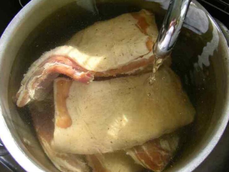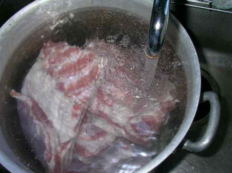塩抜きが終わったら、肉の水気をペーパータオルなどで拭き取ります。