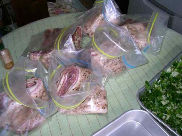 野菜を入れてからブランデーをスプレーし、空気を抜くようにして袋を閉じて本漬け開始。
