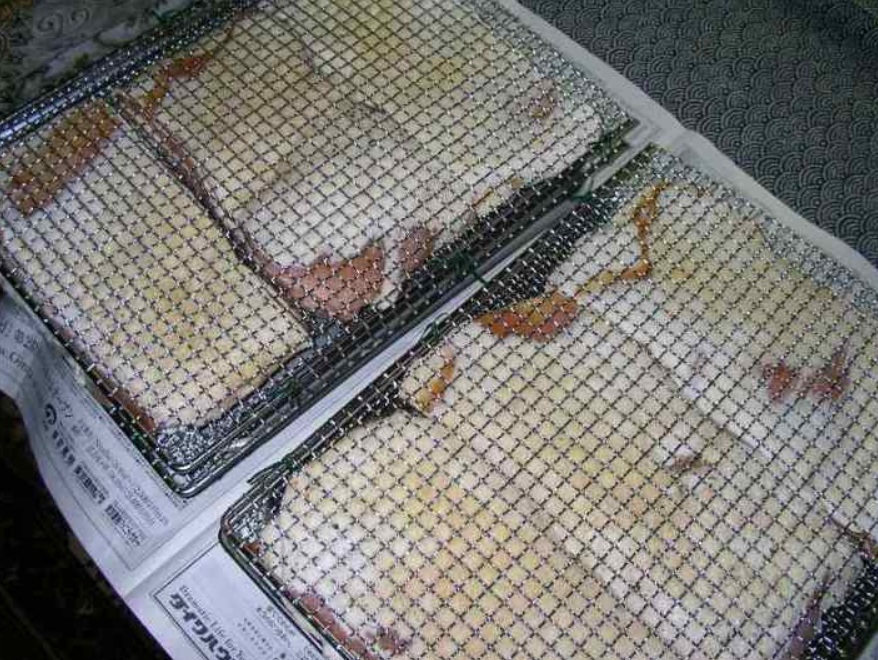 私は燻煙との絡みで、ステンレス製の網に挟んでから、扇風機で乾かしてます。