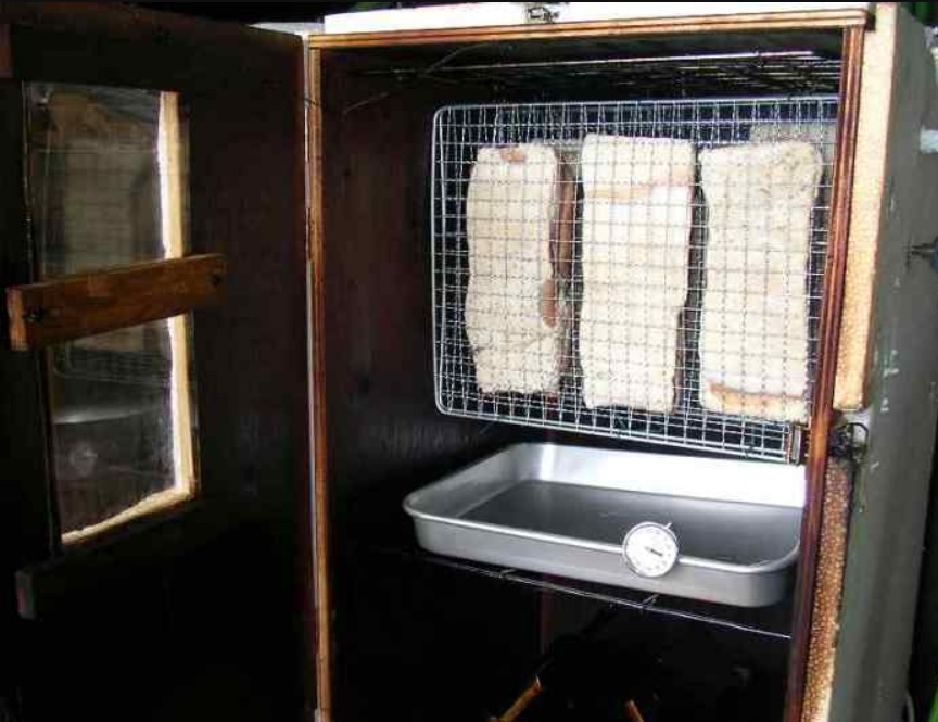理由は分かりませんが、箱は大きい方が確実においしいベーコンになります。
