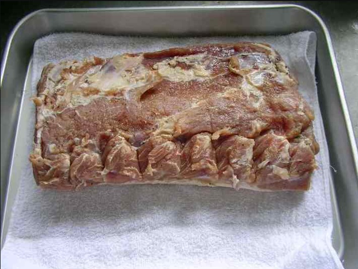 ロース肉はデリケートなので、ベーコンより丁寧に扱います。
