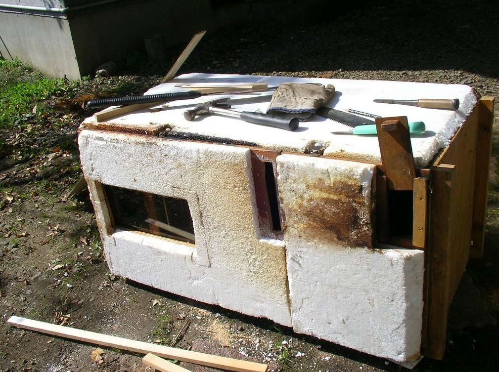 箱の外側の発泡スチロールが無いと、ここ(岩手県中部)では冬場に箱内温度が70℃に達しません。